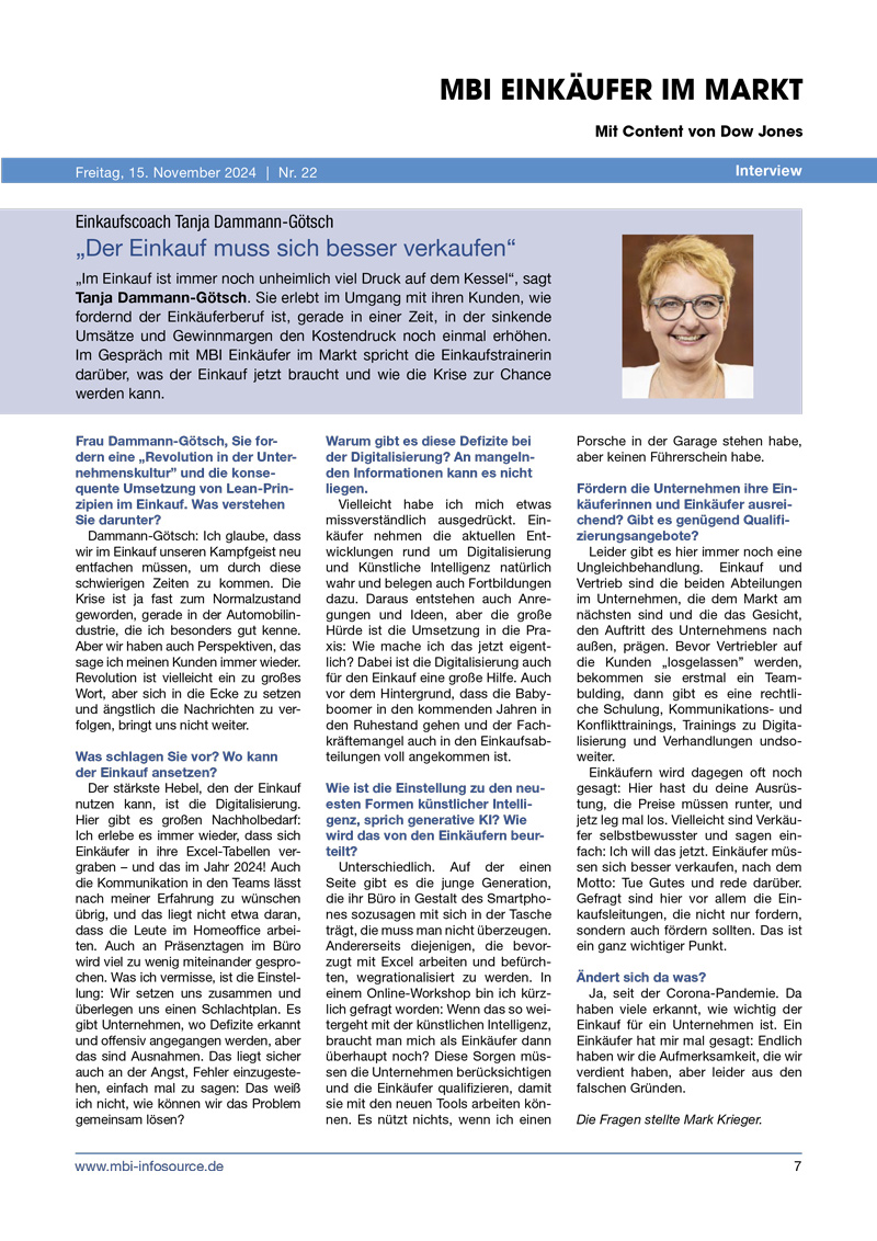 Interview mit Einkaufscoach Tanja Dammann-Götsch im MBI "Einkäufer im Markt"